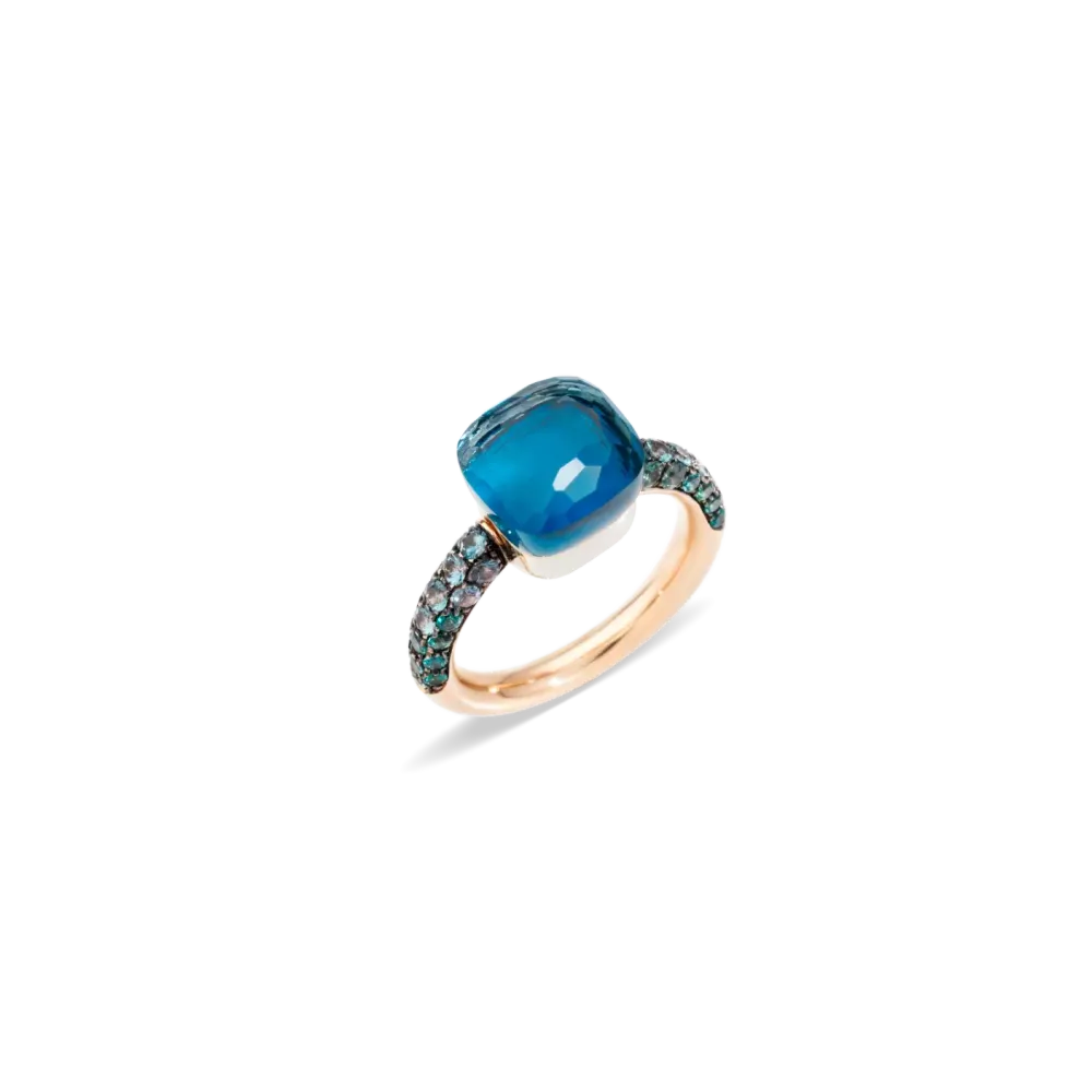 Кольцо Nudo Classic из Лондон топаза погружает в средиземноморское вдохновение благодаря насыщенным синим цветам драгоценных камней.