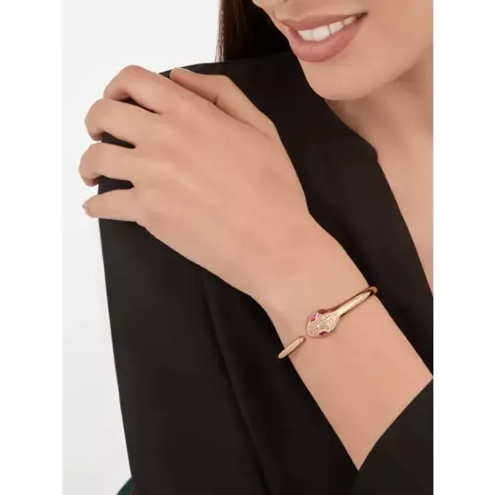 Исполненный гипнотической притягательности браслет Serpenti отдает должное легендарному образу змеи, который приобретает форму роскошного и изысканного ювелирного изделия. Черпая вдохновение в соблазнительности женского взгляда, Дом Bulgari предлагает новую интерпретацию своего тотема, в которой особый акцент сделан на глазах, наделенных неудержимой пленяющей силой.