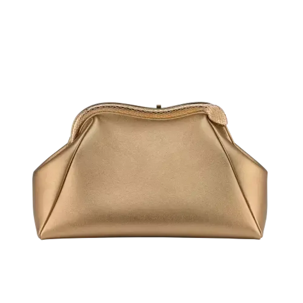 Сумка с латунной оправой в форме змеи с покрытием из розового золота, вдохновленной смелыми ожерельями Serpenti 1960-х годов, предлагает несколько стилей в одном, поскольку ее изогнутый металлический верх украшен выгравированными чешуйками и красными эмалевыми глазами спереди. для гламурного образа и вставка из простой телячьей кожи на спине для более непринужденного образа. Модель имеет одно отделение, застежку на кнопку, кожаный ремешок и металлический логотип BULGARI на спине.