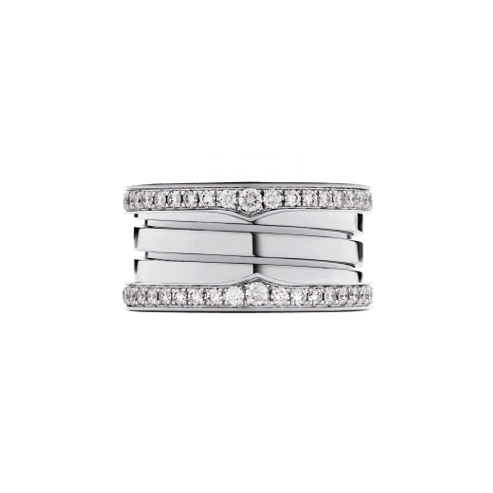 Навеянное самым известным амфитеатром, Колизеем, кольцо B.zero1 являет собой истинный манифест творческого видения Дома Bulgari, бросающего вызов устоям ювелирного дизайна. Чистые линии этой выразительной спирали символизируют гармоничную связь прошлого, настоящего и будущего, определяющую величественный облик Вечного города, и служат ярким выражением новаторского духа всей коллекции. Кольцо B.zero1 в четыре полосы, белое золото 18 карат, бриллиантовое паве по краям. Цена изделия зависит от размера.