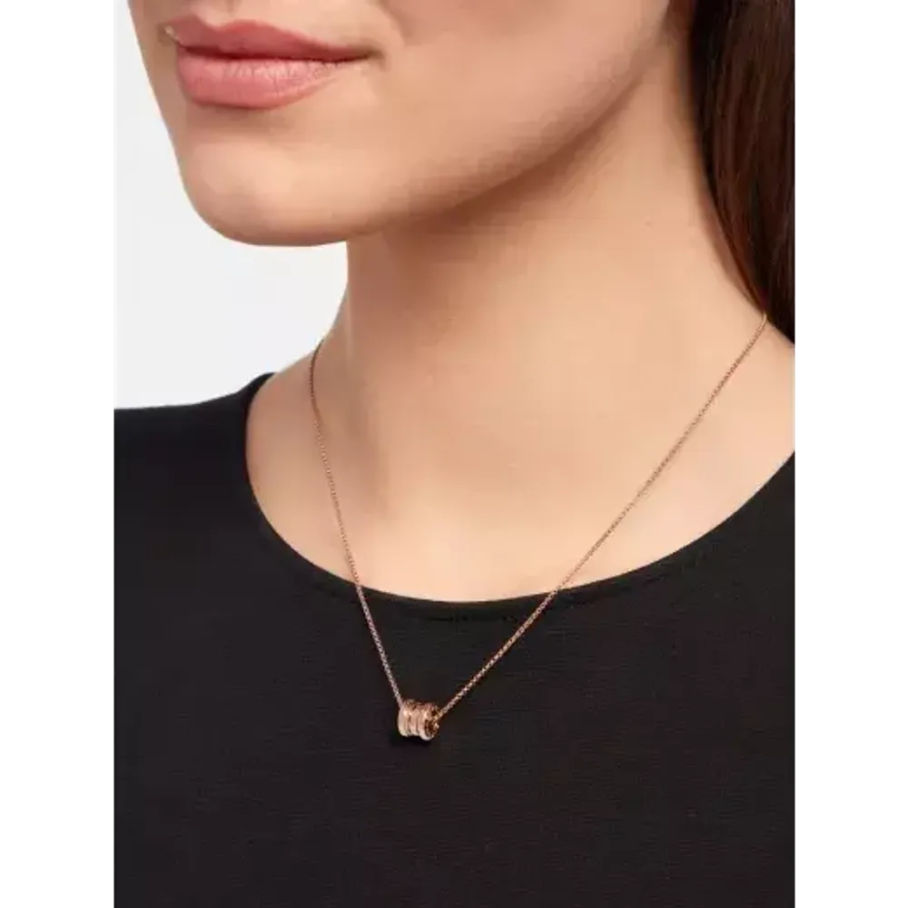 Навеянная самым известным амфитеатром – Колизеем, – коллекция B.zero1 являет собой подлинный манифест творческого видения дома Bvlgari и истинное воплощение итальянского дизайна. Изящная спираль, бросающая вызов устоям ювелирной эстетики, символизирует гармоничную связь прошлого, настоящего и будущего, определяющую величественный облик Вечного города, и служит ярким выражением новаторского духа всей коллекции. Колье B.zero1 с миниатюрной подвеской, розовое золото 18 карат.