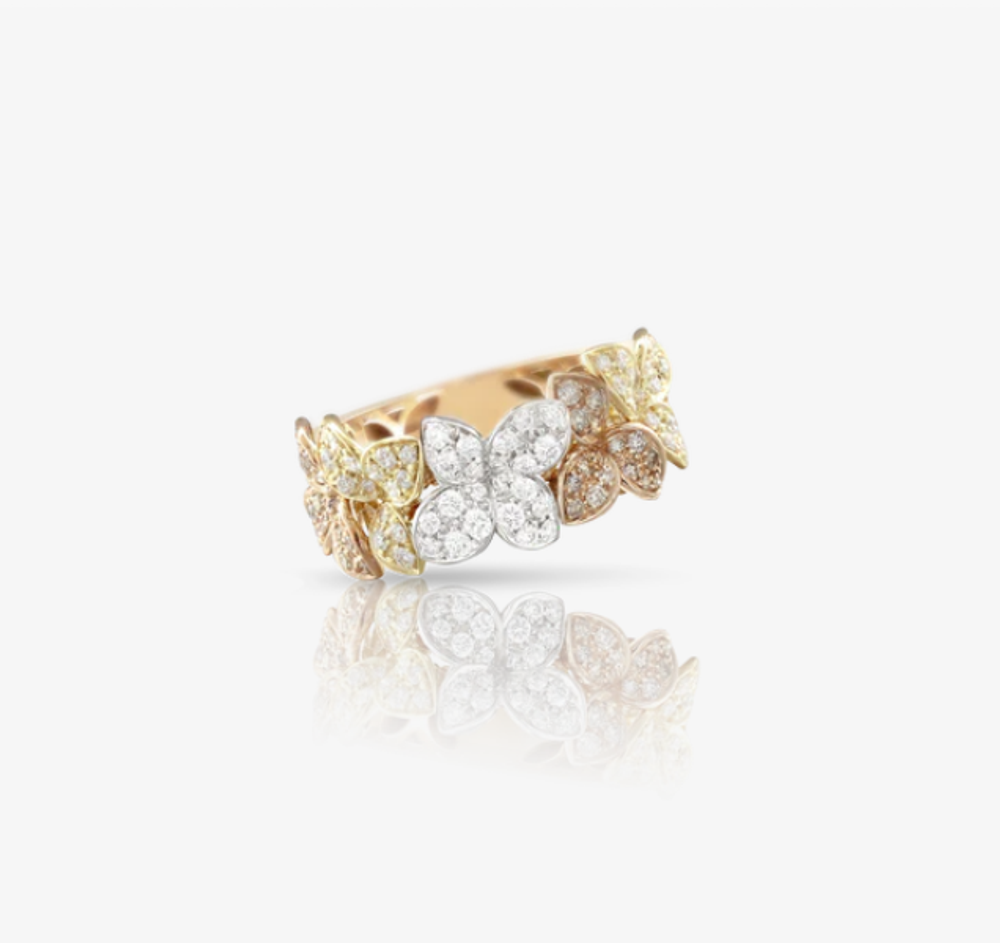 Кольцо Ama из розового, белого и желтого золота с белыми бриллиантами и бриллиантами цвета шампанского.