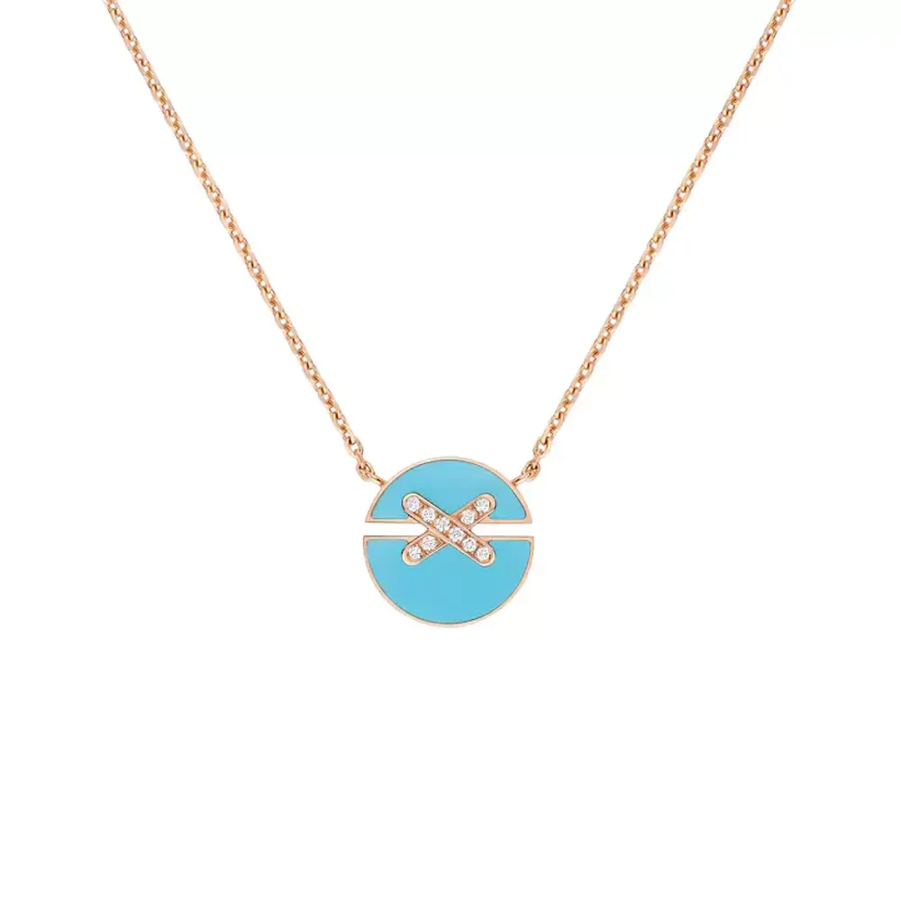 Подвеска Jeux de Liens Harmony среднего размера из розового золота с бирюзой и бриллиантами классической огранки.