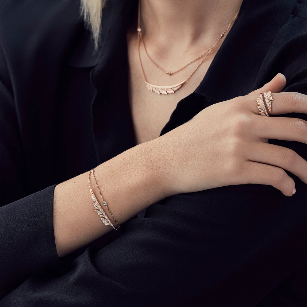 Браслет Magnipheasant Pave Feather из 18-каратного розового золота с белыми бриллиантами pave 0,42 карата.
