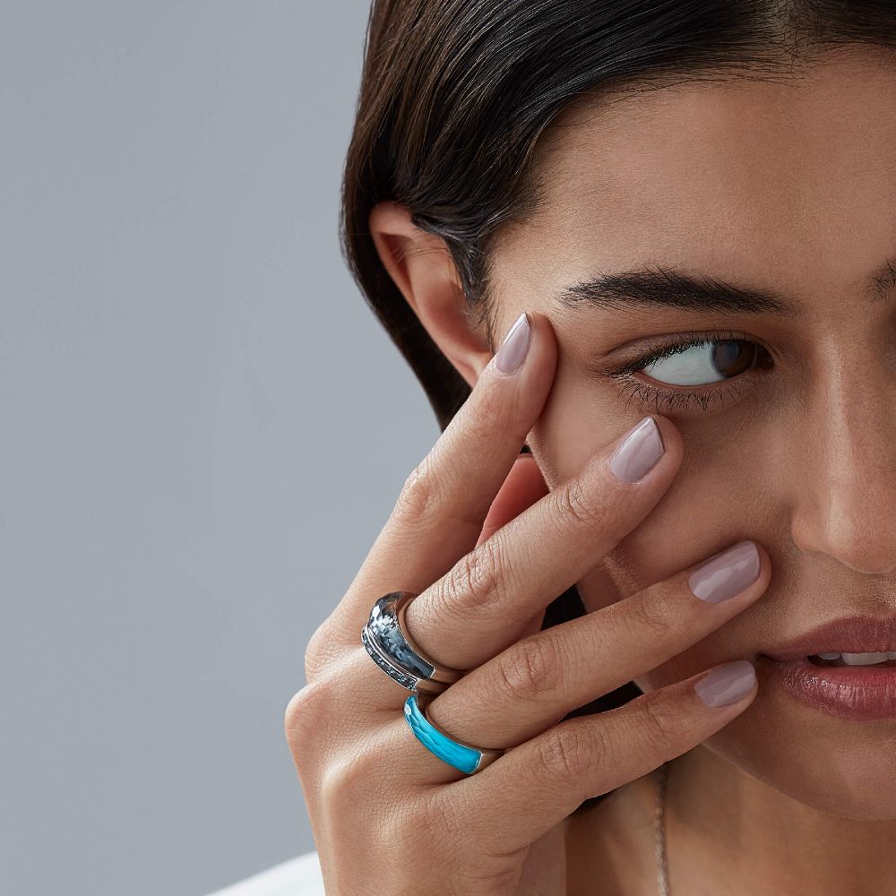 Простое, но смелое кольцо Crystal Haze (3,15 карата) Slimline Shard Stack из 18-каратного белого золота, бирюзы и горного хрусталя добавит ярких красок в ваш повседневный или вечерний образ