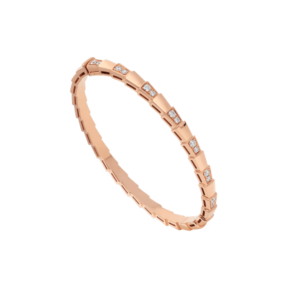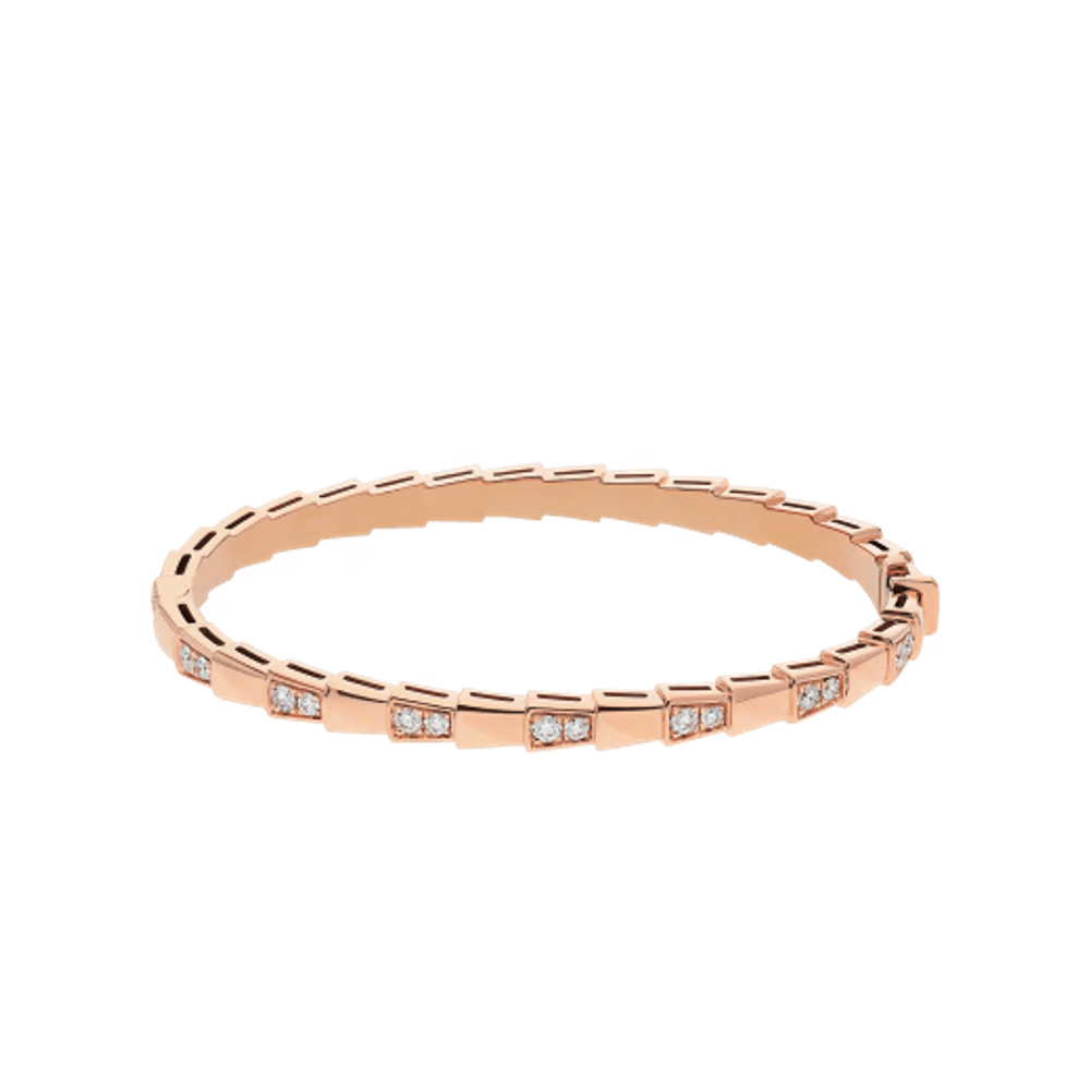 Подобно изготовившейся к броску змее, браслет изящно обвивается вокруг запястья, пленяя взор изысканностью формы. Это утонченное стильное украшение завораживает опасной красотой чешуек и грацией змеиного тела; его магнетический дизайн пронизан чувственностью и соблазном. Свет и тень, мудрость и страсть – здесь вся противоречивая натура змеи. Браслет Serpenti Viper, розовое золото 18 карат, фрагменты бриллиантового паве. (высота 4 мм)