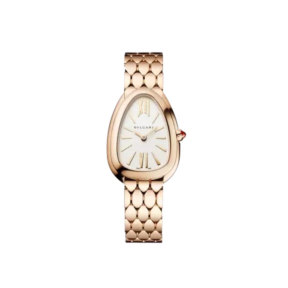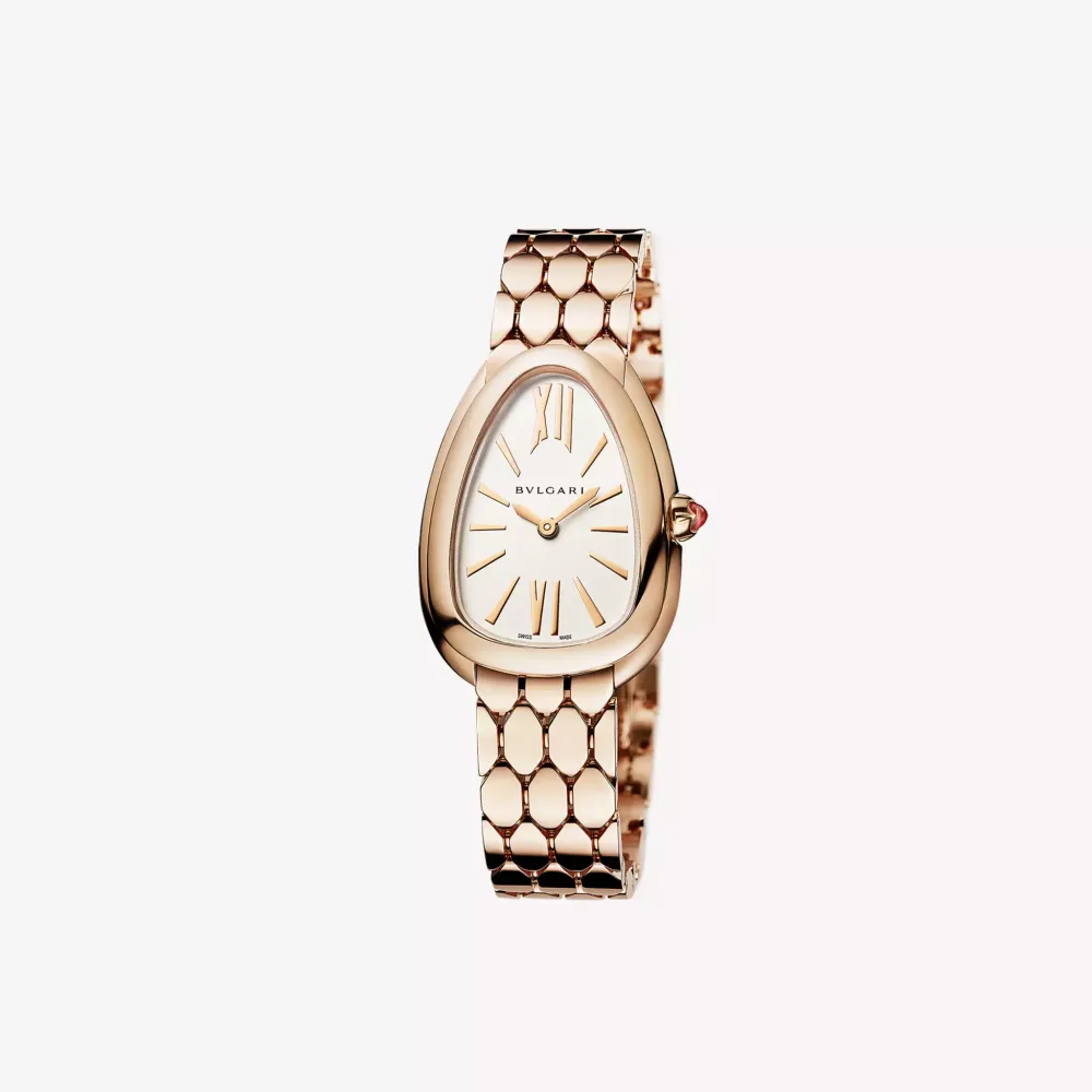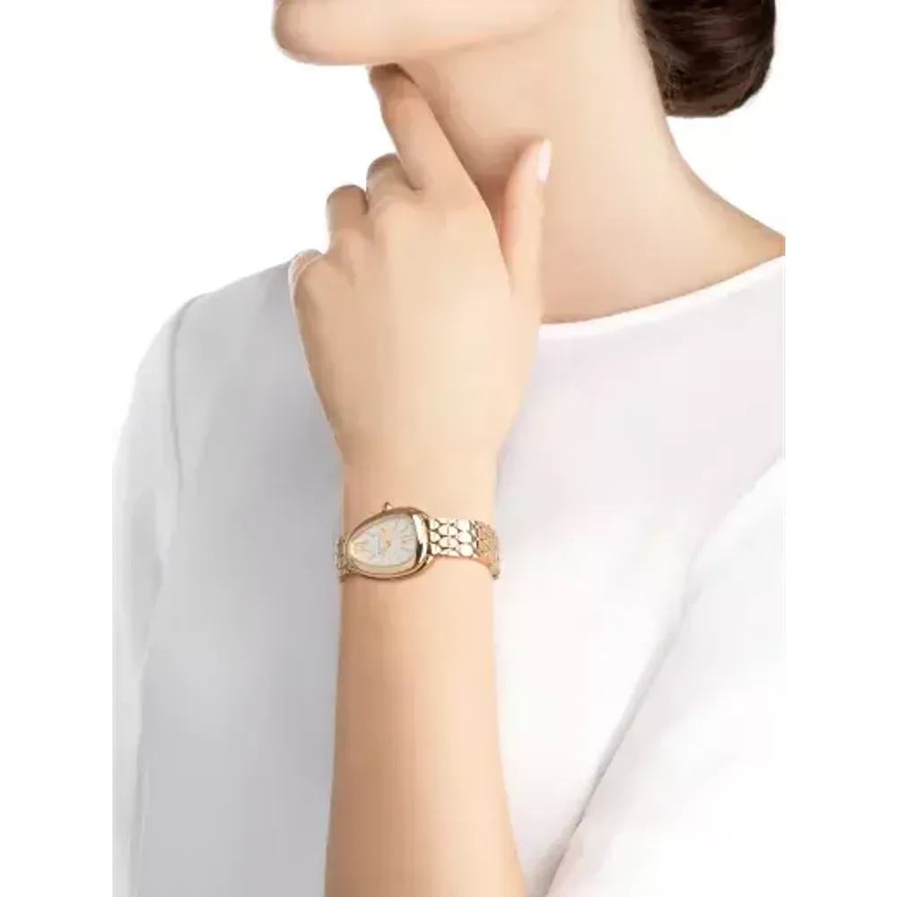 Часы Serpenti Seduttori, корпус из розового золота 18-карат, серебристо-белый опаловый циферблат, браслет из розового золота.
