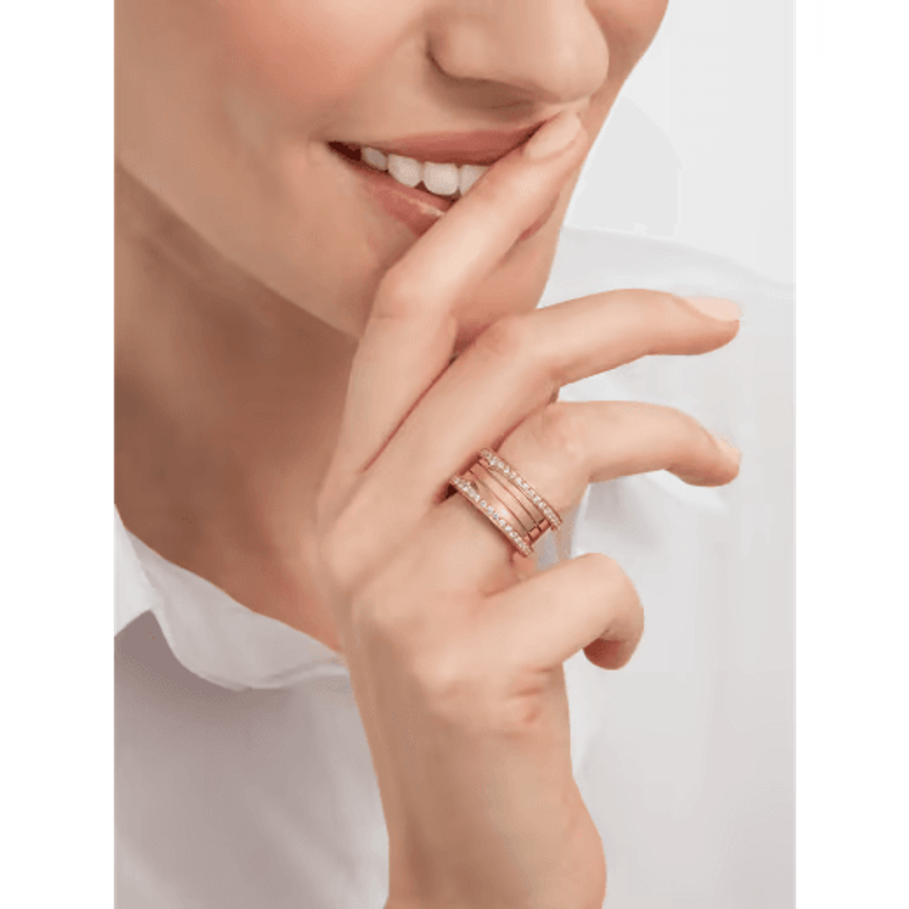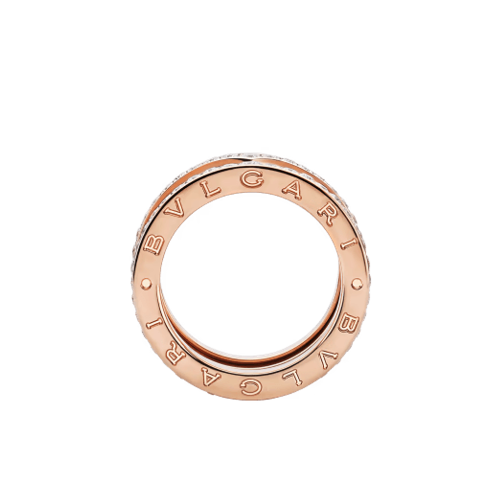 Навеянное самым известным амфитеатром, Колизеем, кольцо B.zero1 являет собой истинный манифест творческого видения Дома Bulgari, бросающего вызов устоям ювелирного дизайна. Чистые линии этой выразительной спирали символизируют гармоничную связь прошлого, настоящего и будущего, определяющую величественный облик Вечного города, и служат ярким выражением новаторского духа всей коллекции. Кольцо B.zero1 в четыре полосы, розовое золото 18 карат, бриллиантовое паве по краям. Цена изделия зависит от размера.