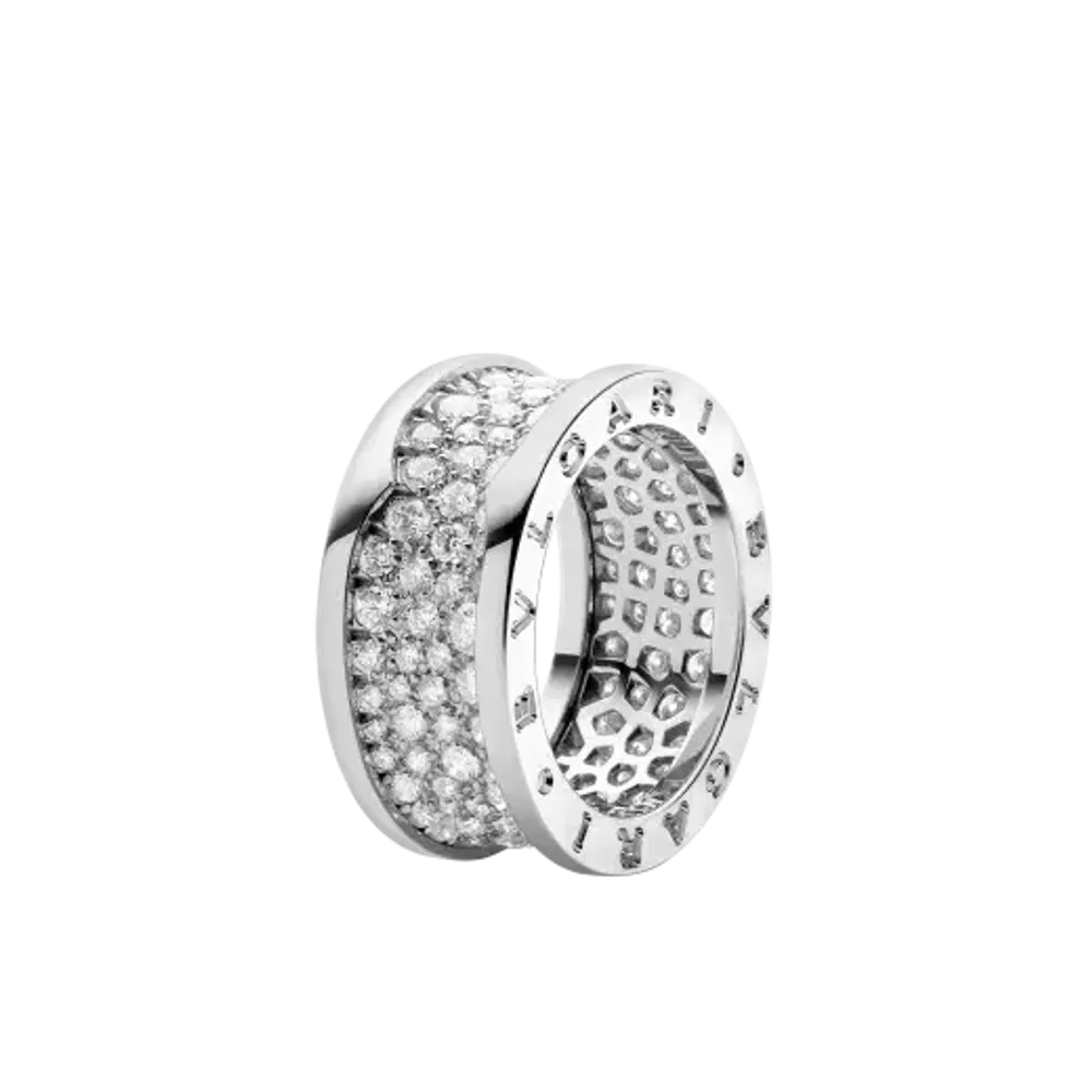 Навеянное самым известным амфитеатром, Колизеем, кольцо B.zero1 являет собой истинный манифест творческого видения Дома Bulgari, бросающего вызов устоям ювелирного дизайна. Чистые линии этой выразительной спирали символизируют гармоничную связь прошлого, настоящего и будущего, определяющую величественный облик Вечного города, и служат ярким выражением новаторского духа всей коллекции. Кольцо B.zero1, белое золото 18 карат, бриллиантовое паве. Цена изделия зависит от размера.