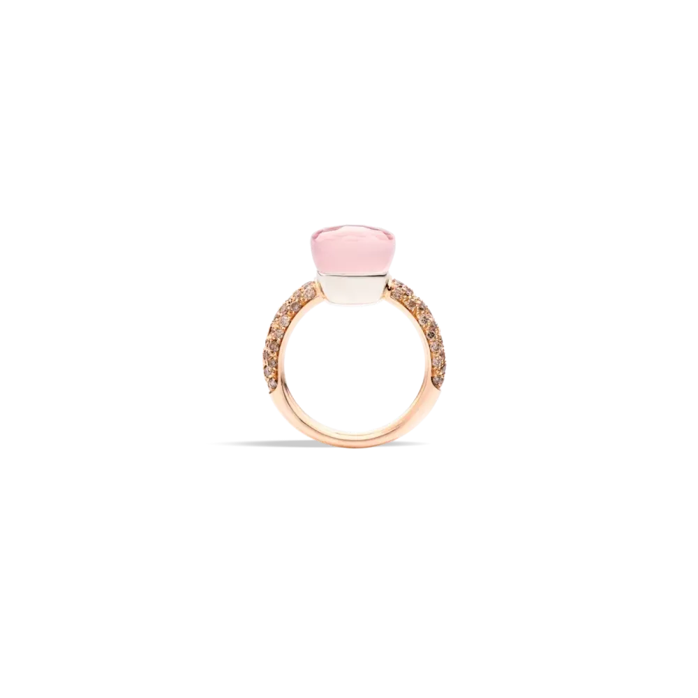 В сочетании яркого розового кварца и халцедона подчеркивается уникальность женщины. Тонкие оттенки розового кварца и халцедона сверкают миланским колоритом и драгоценным итальянским дизайном.
