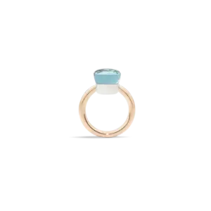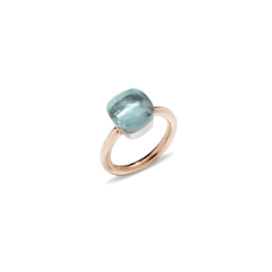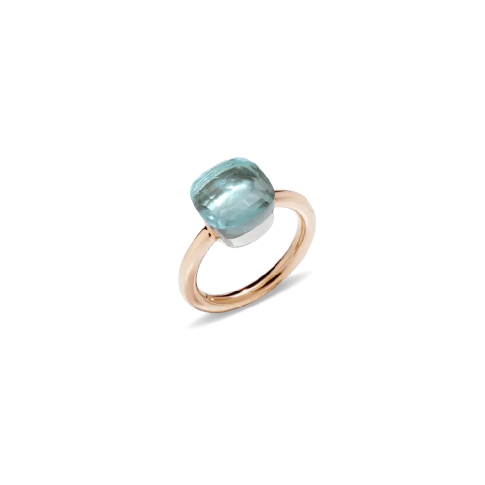 Кольцо Nudo Classic из розового и белого золота с голубым топазом-культовый дизайн Pomellato. "Обнаженный" камень предназначен для комбинирования и смелого ношения в одиночку.