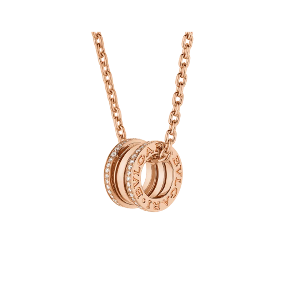 Колье B.zero1 с подвеской, розовое золото 18 карат, бриллиантовое паве.