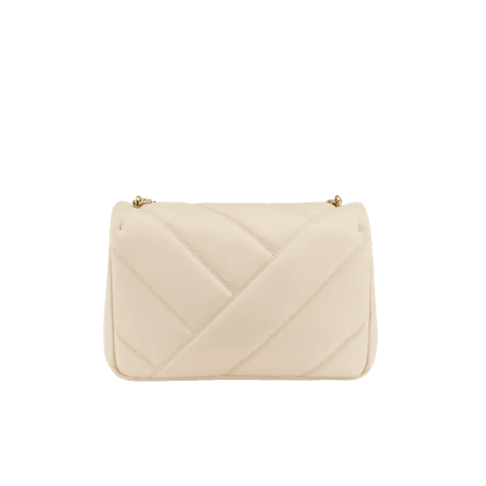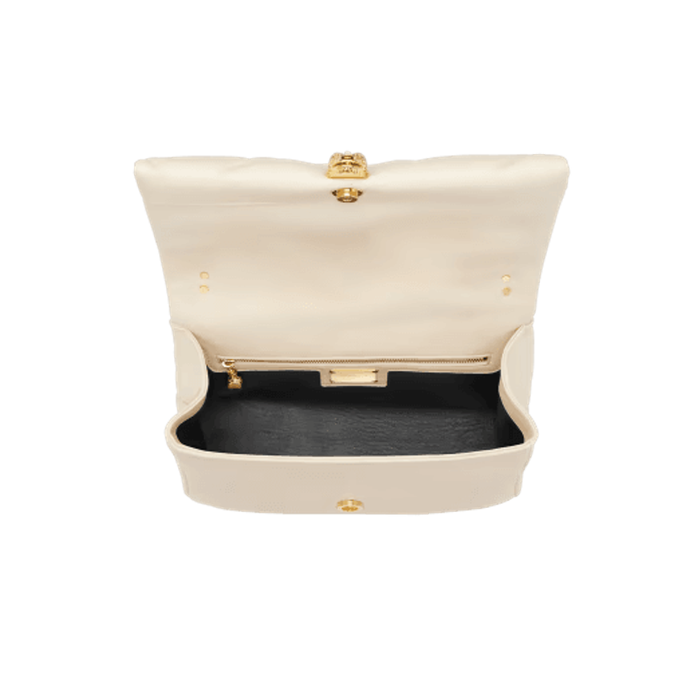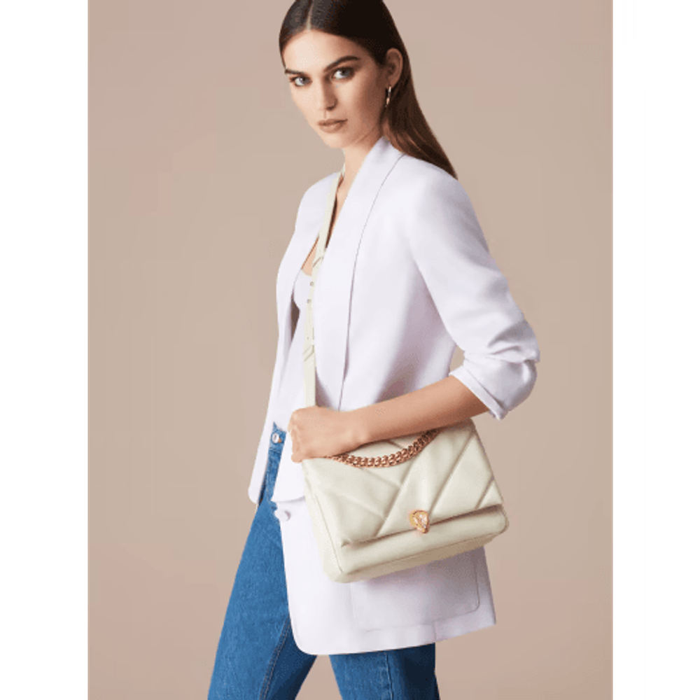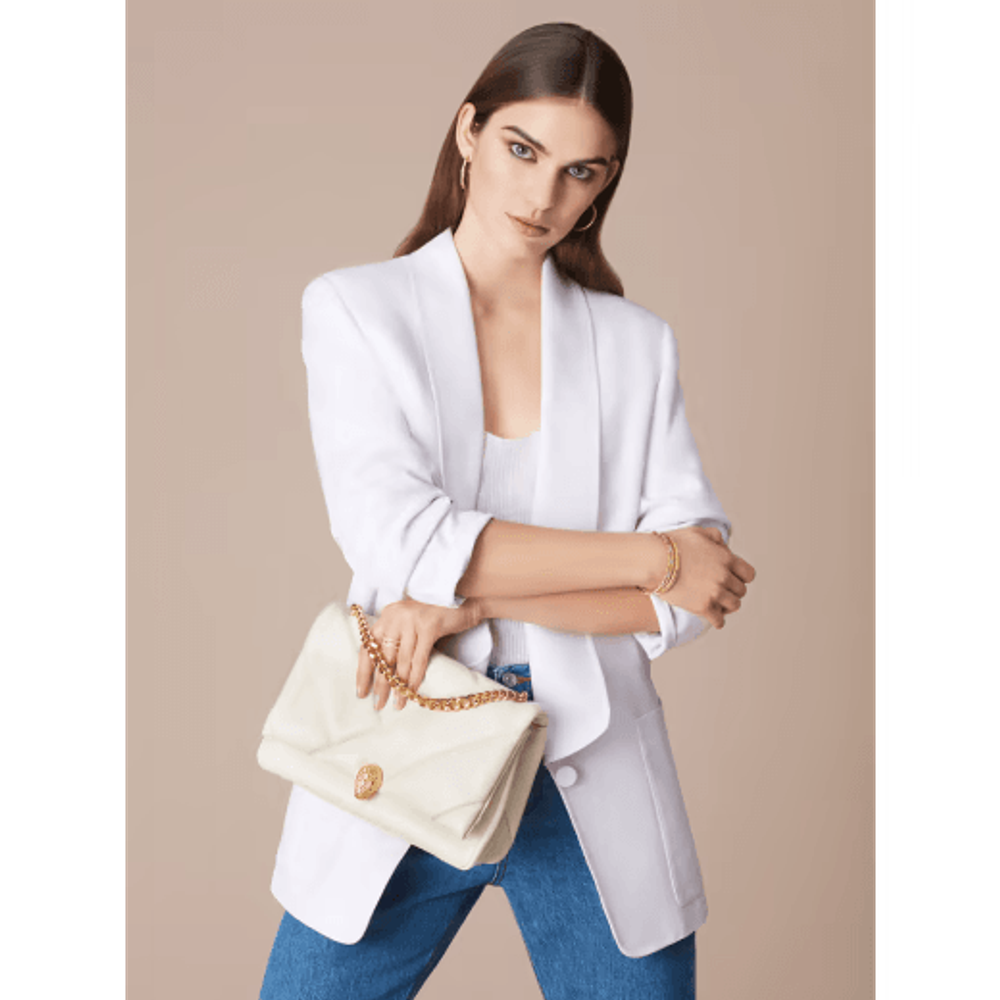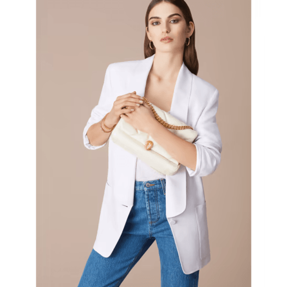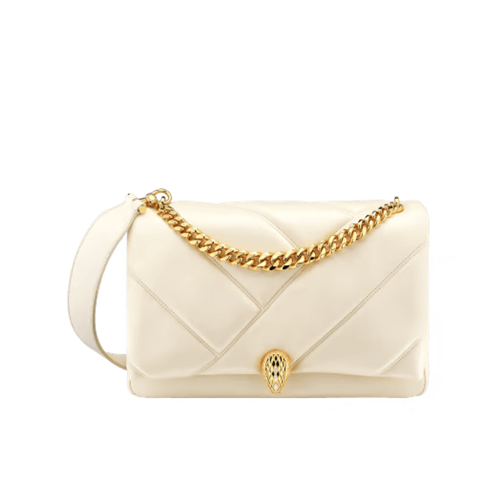 Легендарная цепочка Bvlgari, напоминающая о нашей ювелирной ДНК, украшает клапан как ожерелье, а также подходит в качестве изысканной ручки.